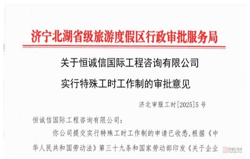 關(guān)于恒誠信國際工程咨詢(xún)有限公司實(shí)行特殊工時(shí)工作制審批意見(jiàn)的公示