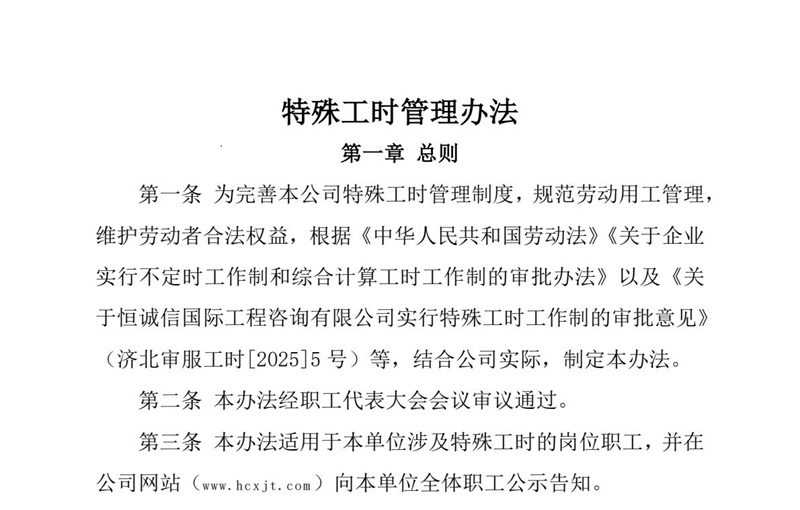 關(guān)于恒誠信國際工程咨詢(xún)有限公司《特殊工時(shí)管理辦法》的公示