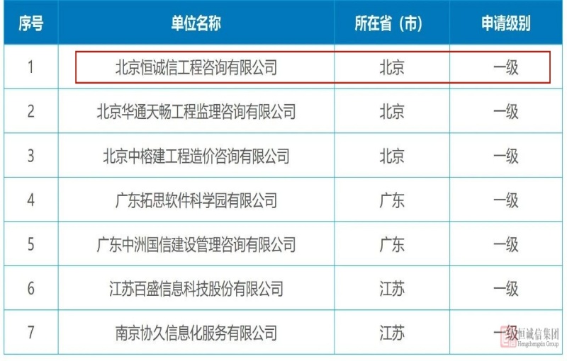 實(shí)力認證 | 恒誠信斬獲軟件造價(jià)評估一級資質(zhì)